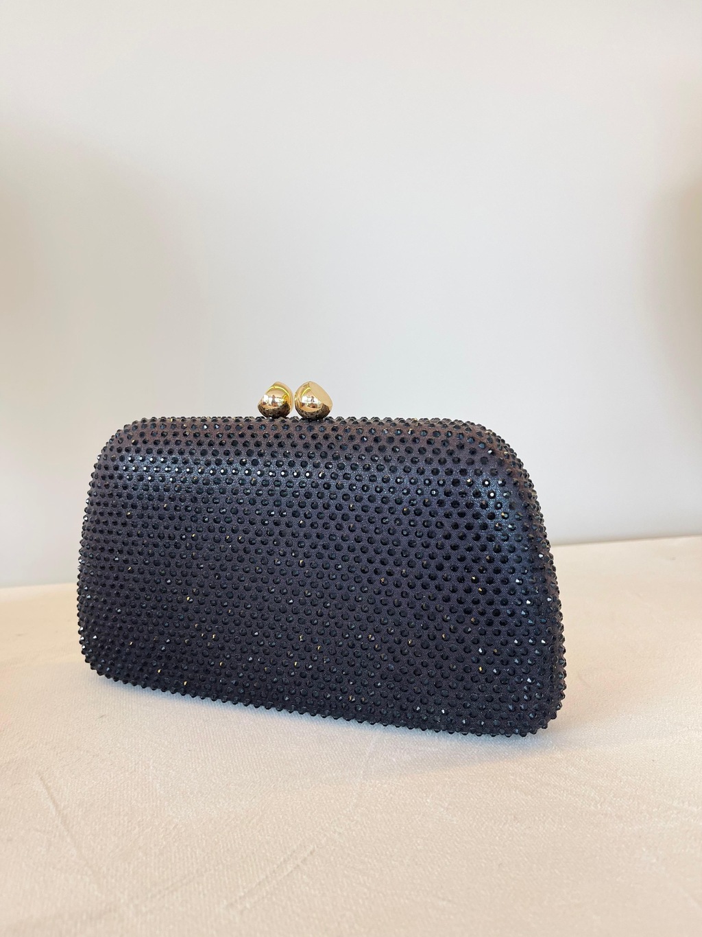 Clutch com strass tecido, vem com alça de correntaria dourada.
